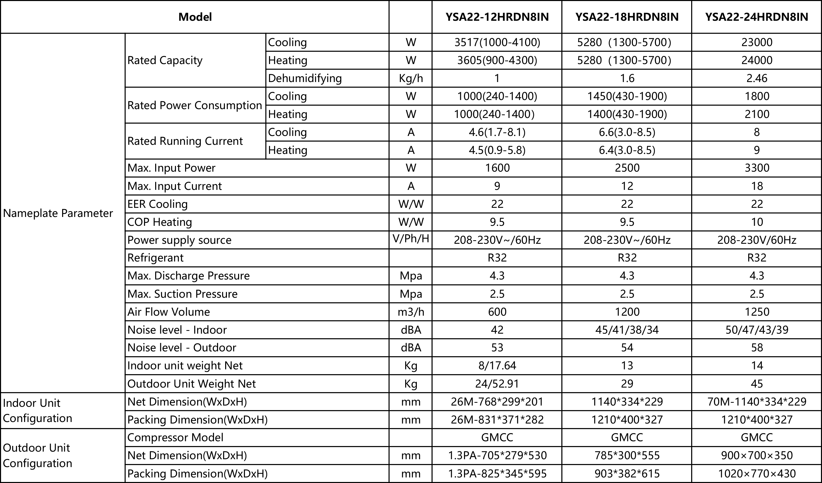 USA Seer 22 Heating Cooling Appliances Mini Split Air Conditioner R32 Inverter Wifi 1 Ton