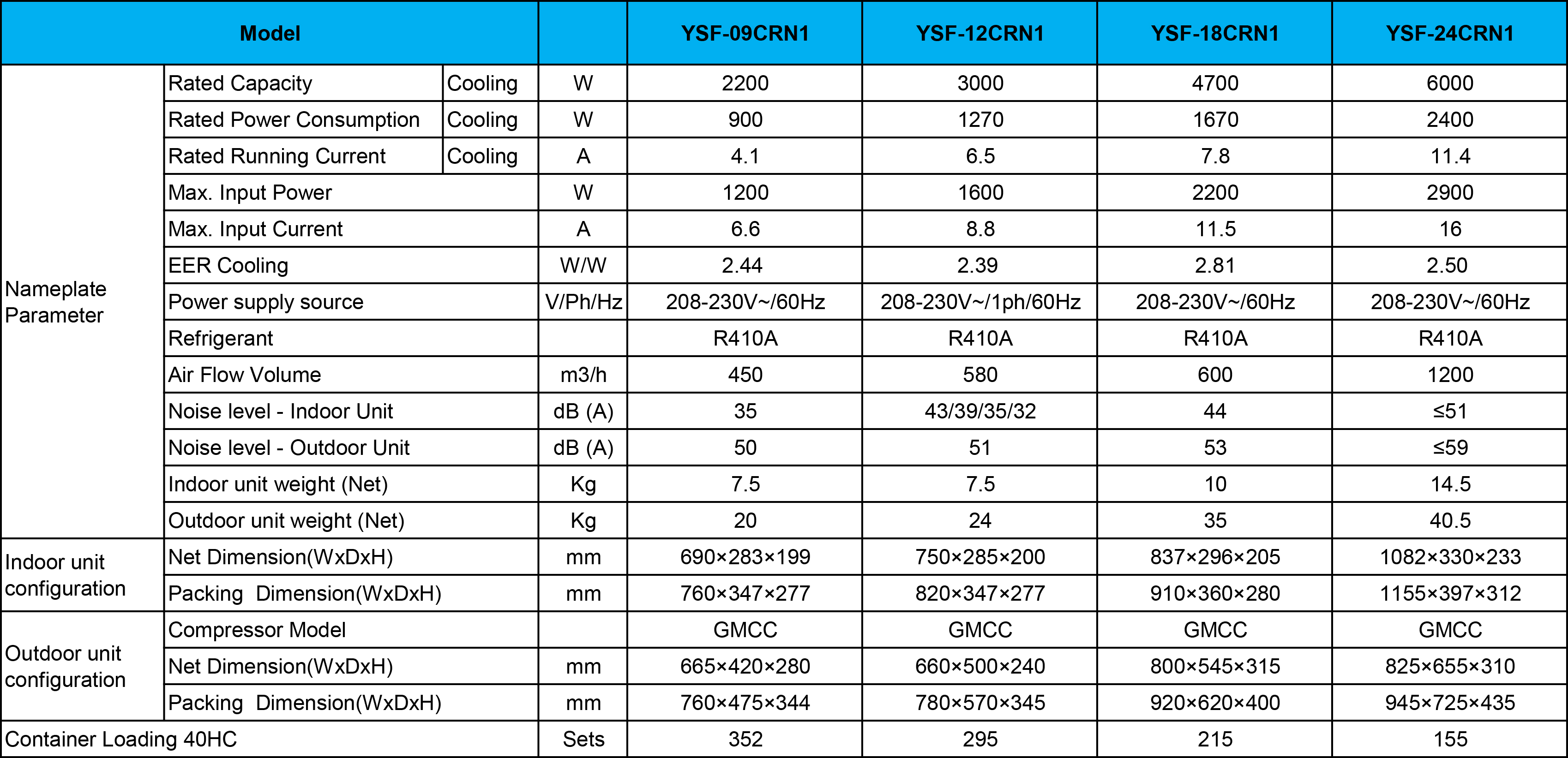 1. Only cooling without inverter
