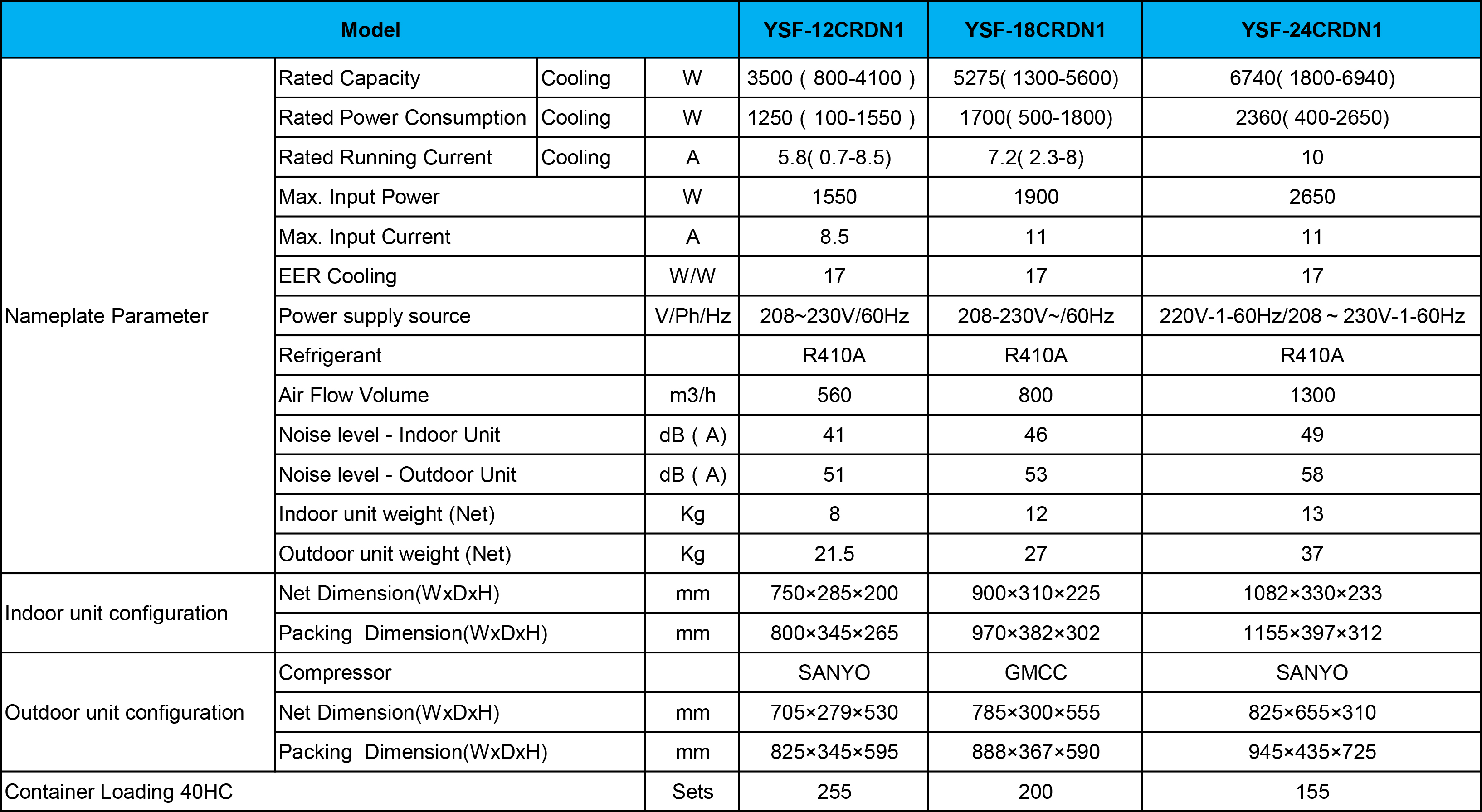 SEER 17 60Hz R410a Only 12000 ~ 24000 Btu DC Inverter Divided Air Conditioner For Dominica Puerto Rico